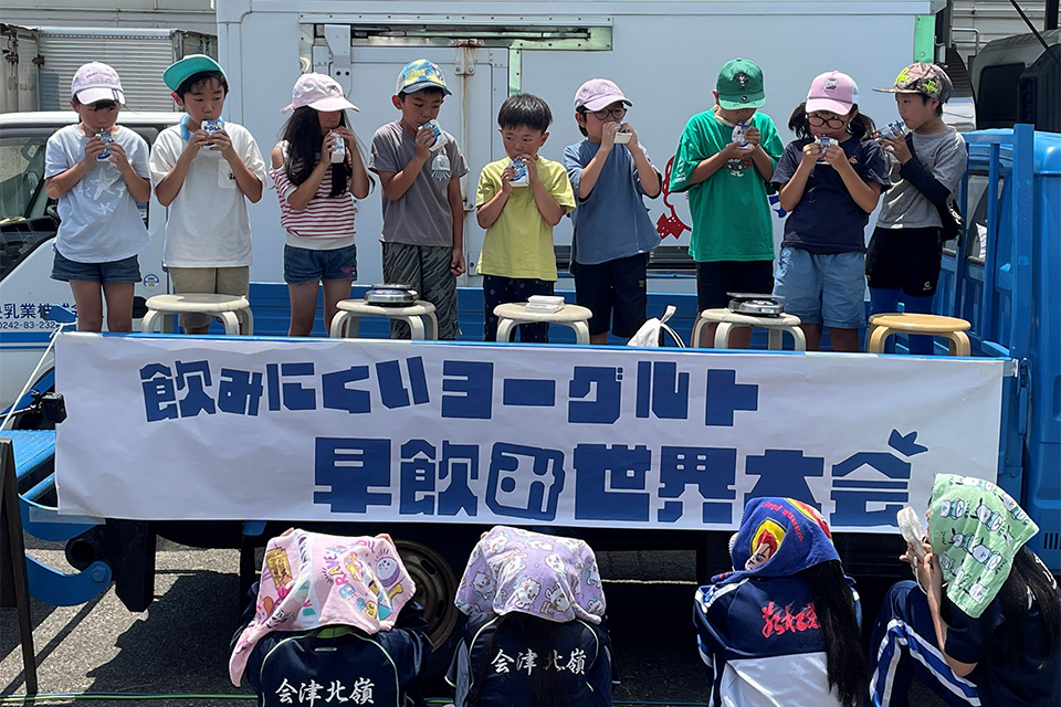 挑戦者求む!「飲みにくい」でお馴染み、会津中央乳業の「会津の雪ソフトクリーミィヨーグルト」で早飲み大会を開催します。ぜひ奮ってご参加ください!